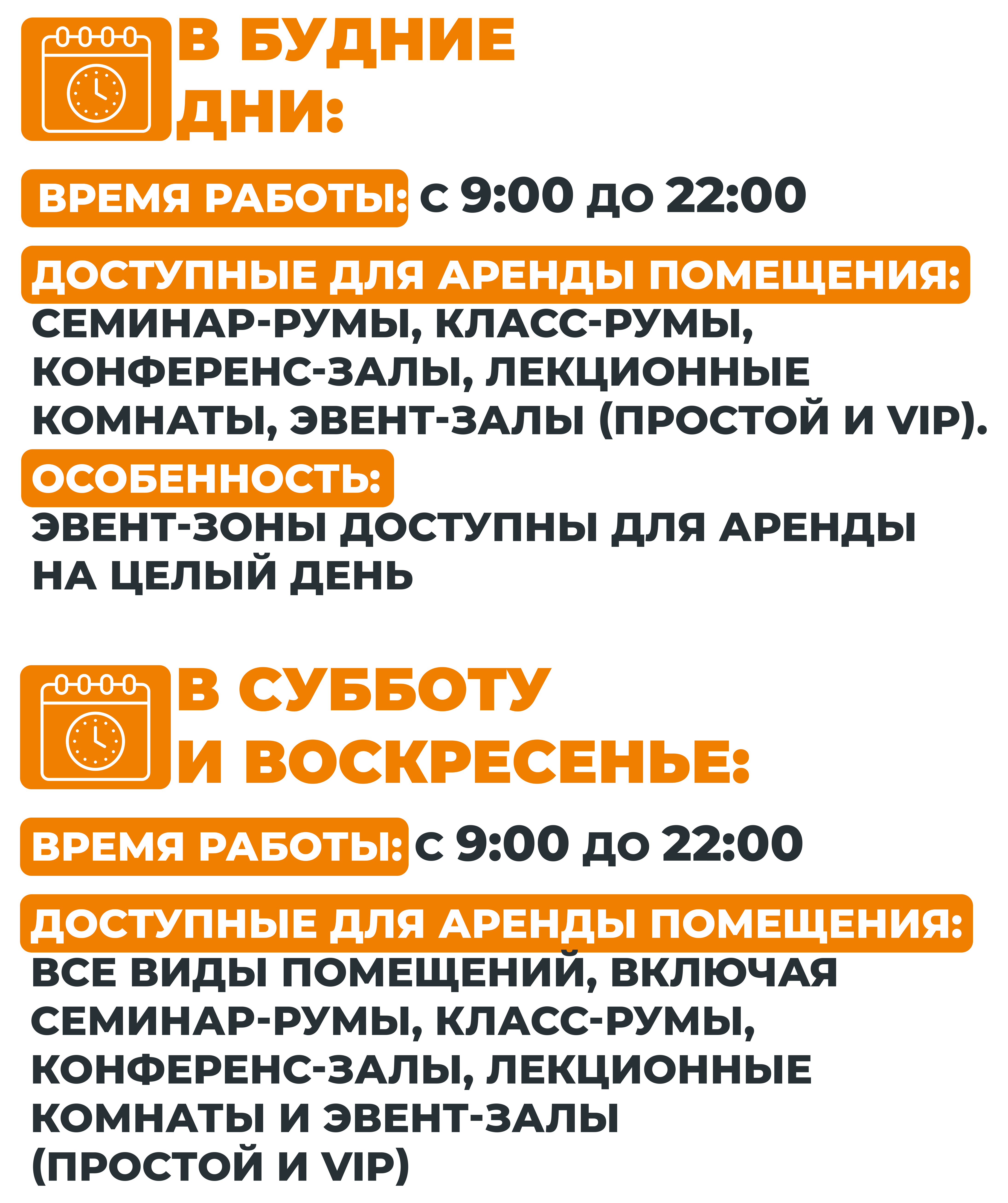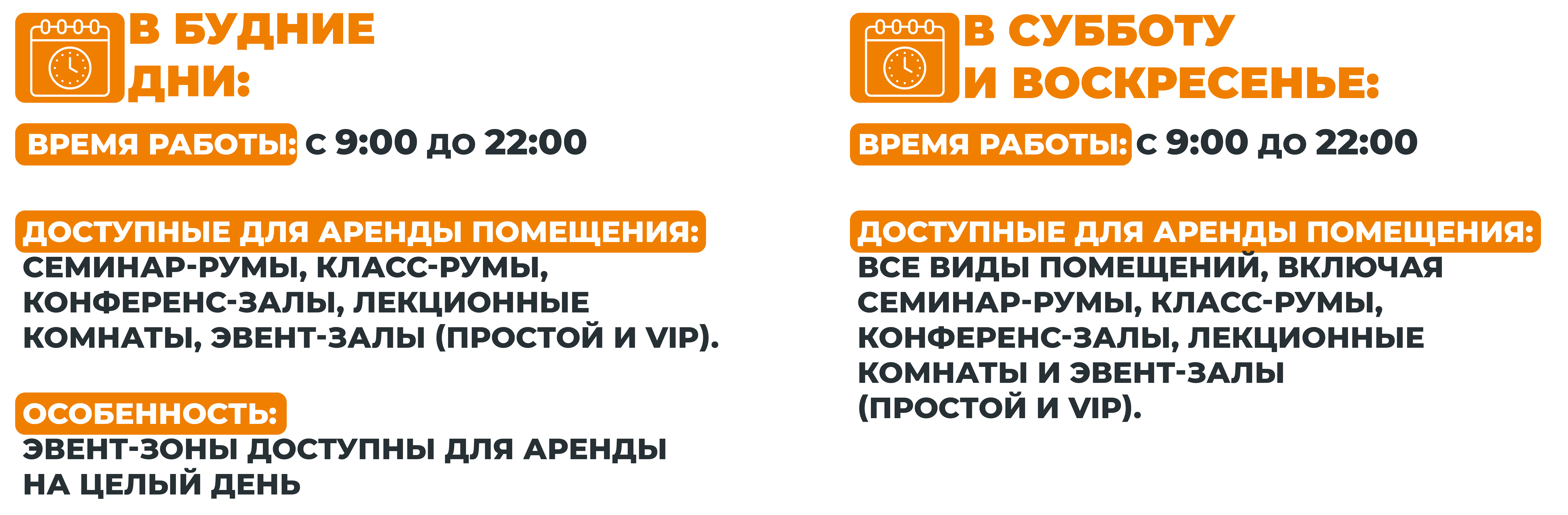 РЕЖИМ РАБОТЫ И ВРЕМЯ АРЕНДЫ ПОМЕЩЕНИЙ